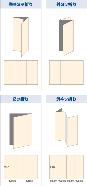 3ッ折りだけがリーフレットではありません。2ッ折りや4ッ折のリーフレットもお楽しみ下さい。